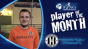FERNANDO GARCÍA jugador del equipo TOMARES F7, de TERCERA DIVISIÓN, se proclama como mejor jugador del més de Marzo de FÚTBOL 7 GIRALDA, y es el ganador de una sesión de fisioterapia, ofrecida por nuestro colaborador BIO-TRAIN. Enhorabuena!!!.